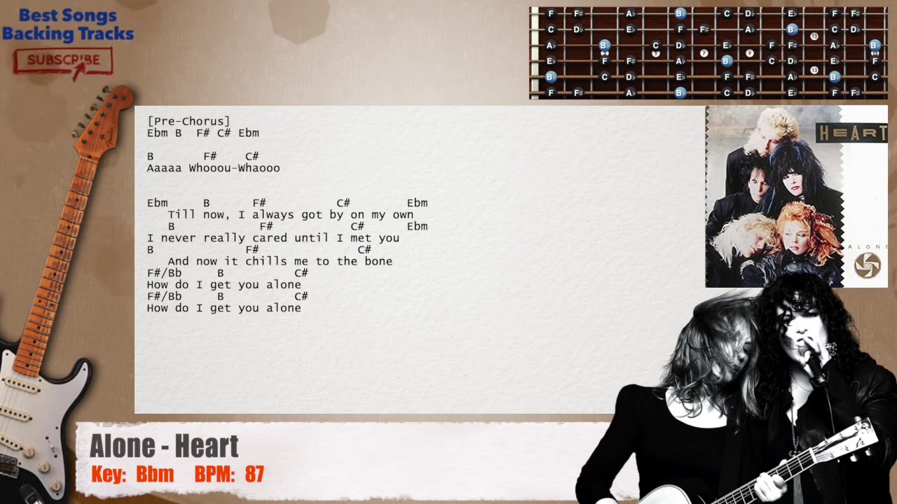 Alone Heart Guitar Backing Track With Chords And Lyrics Youtube